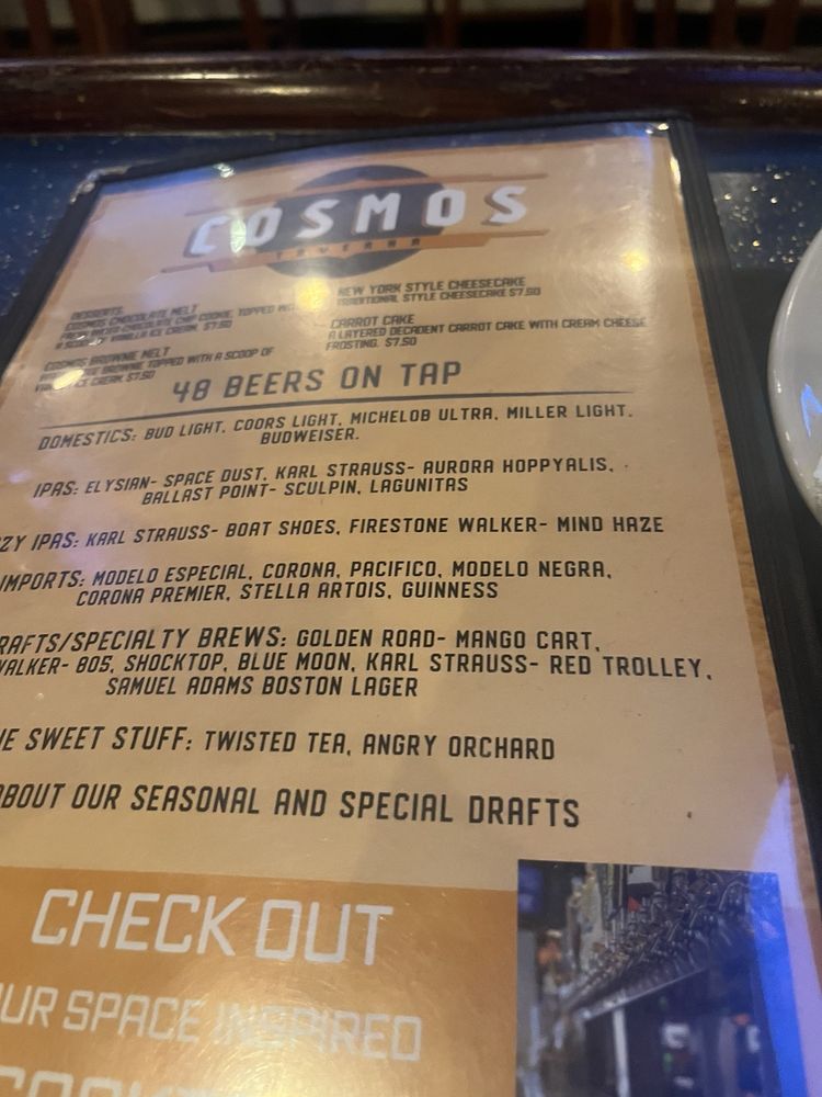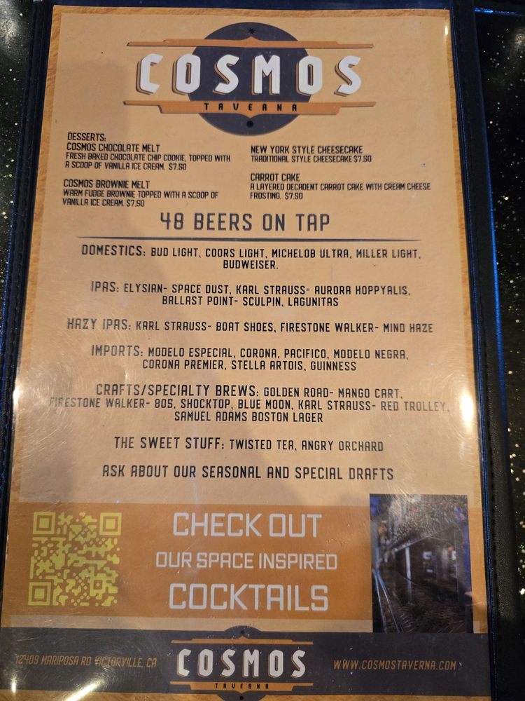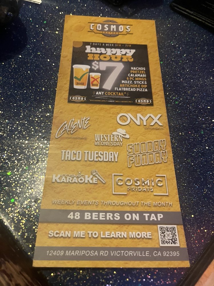 Welcome to Cosmos Taverna, a vibrant sports bar nestled in Victorville, CA, where New American cuisine meets an inviting atmosphere. The menu is a delightful fusion of classic and innovative dishes, perfect for groups and families alike. Whether you’re grabbing a quick bite during a game or enjoying a leisurely evening out, the diverse offerings cater to every palate.